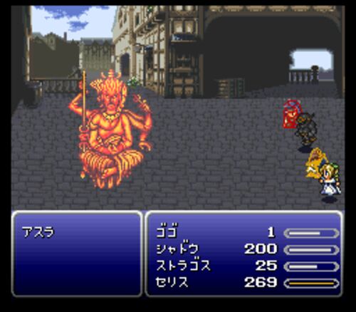 FF6TはVer2.10でひとまず完結されるようですね 作者さんがまた新しい改造を作っているようで楽しみです ◆アスラ HP53700 怒り:スリプル 慈悲:毒、スロウ 笑い:何も効かない カウンターで怒りは烈風殺、慈悲は心無い天使、笑いはデスをしてきます 慈悲のと…